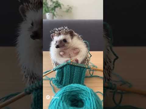 【sora2】編み物に挑戦するハリネズミ|A hedgehog takes up knitting #shorts #おもしろ動物 #ハリネズミ #sora2って動画が話題らしいぞ