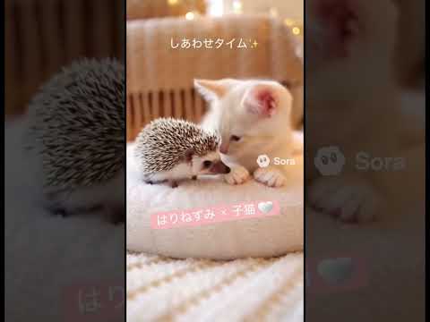 ハリネズミと子猫の幸せタイム✨#ai #shorts #日常 #動物 #pets #cat#癒しって動画が話題らしいぞ