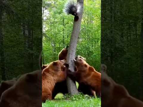 bear vs Hedgehog 🦔🤕 Wild Movement|ハイエナとハリネズミの大騒動 #shorts #wildlife #viralって動画が話題らしいぞ