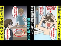 はりねずみ僕が大切にしているハリネズミの「ハリ坊」を、ママは家で邪魔だと思っていた…ある日学校から帰ると、ママが〝見覚えのある針〟をたくさん持っていて、ハリネズミを見ると針がなくて、ぐったりしていた…。 1:名無しさん@お腹いっぱい2025.12.28(Sun) 僕が大切にしているハリネズミの「ハリ坊」を、ママは家で邪魔だと思っていた…ある日学校から帰ると、ママが〝見覚えのある針〟をたくさん持っていて、ハリネズミを見ると針がなくて、ぐった... 2025.12.28はりねずみ