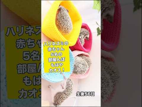 ハリネズミの赤ちゃんが生まれて56日が経った日の様子です。2021年5月7日に誕生したハリンちゃん(当時11カ月)の初仔5名です。
