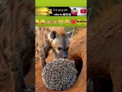 Hyena vs Hedgehog Tiny Spikes, Huge Drama! ハイエナとハリネズミの大騒動 #shorts